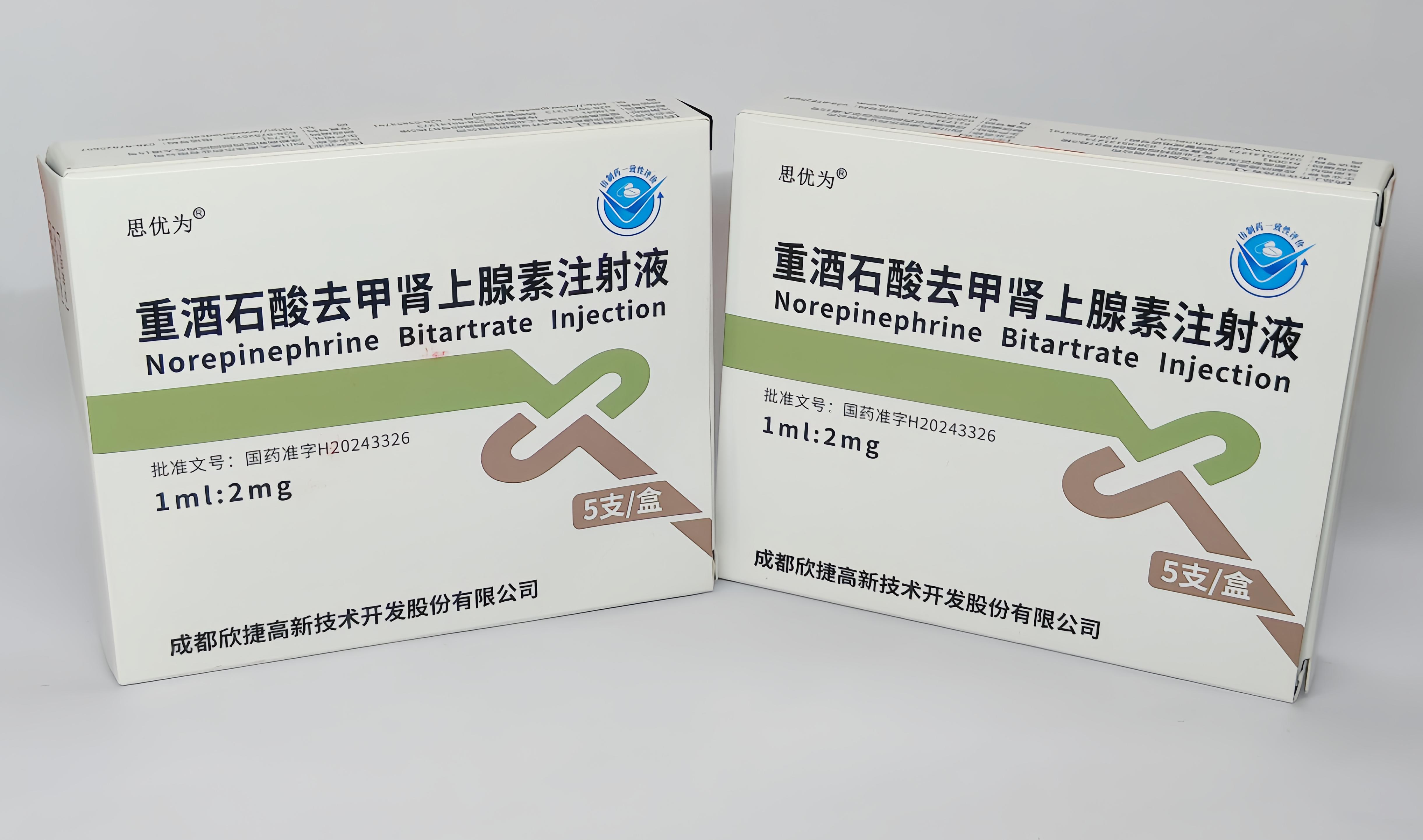 【品名】重酒石酸去甲肾上腺素注射液【规格】1ml:2mg(5支/盒)