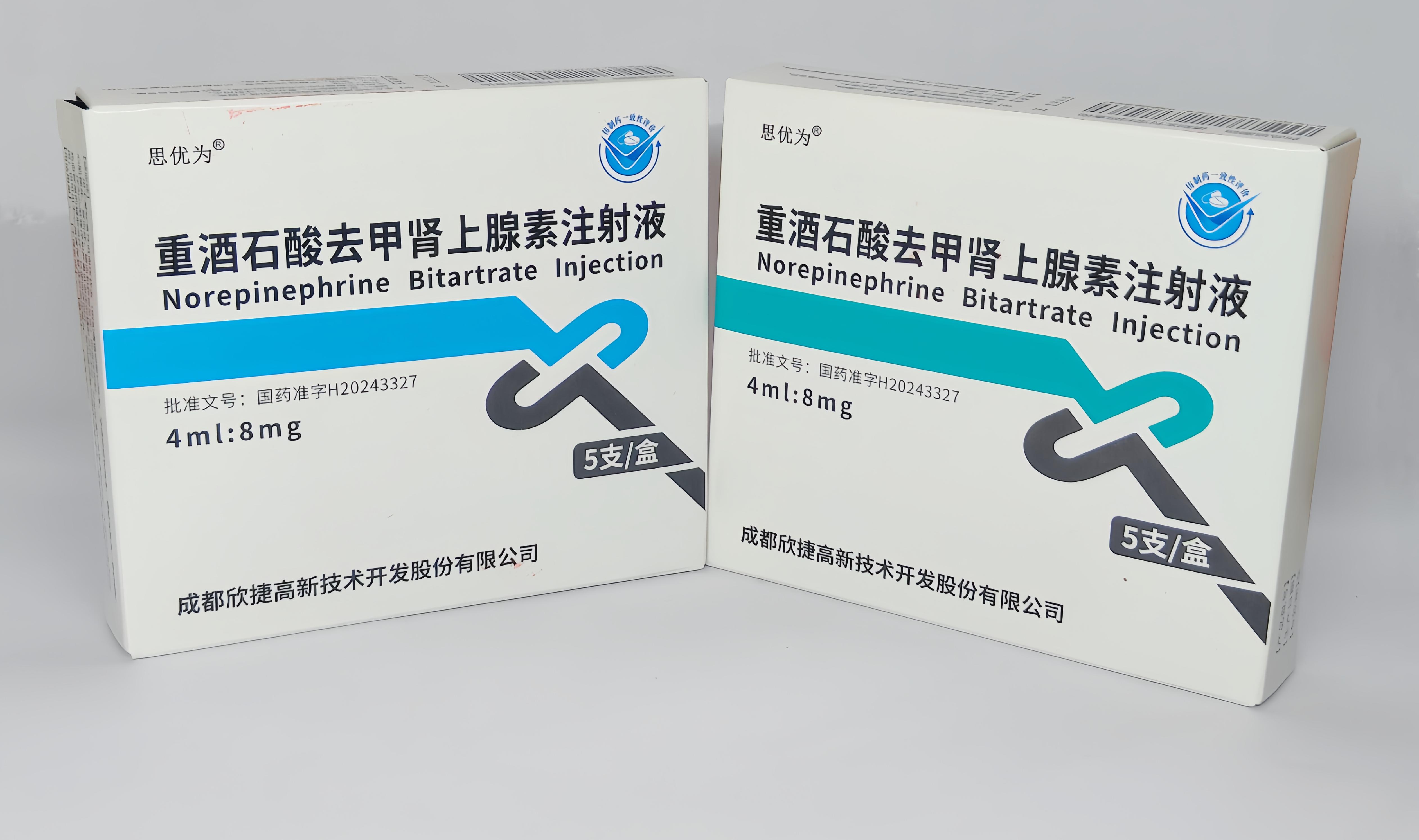 【品名】重酒石酸去甲肾上腺素注射液【规格】4ml:8mg (5支/盒)